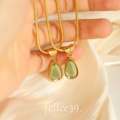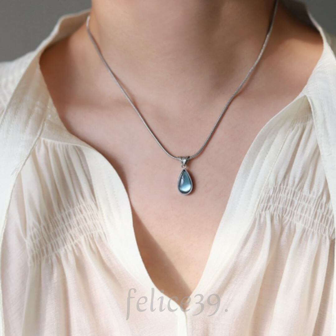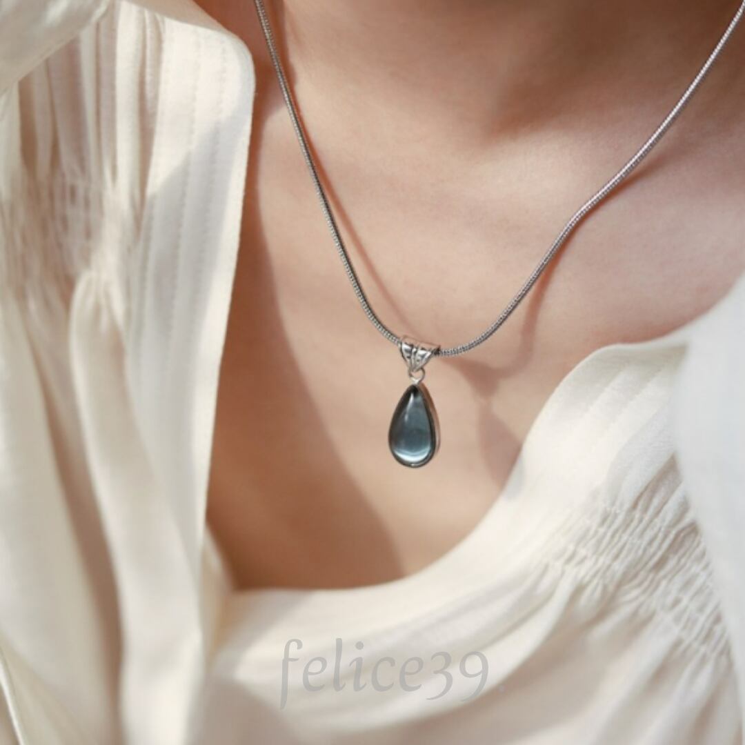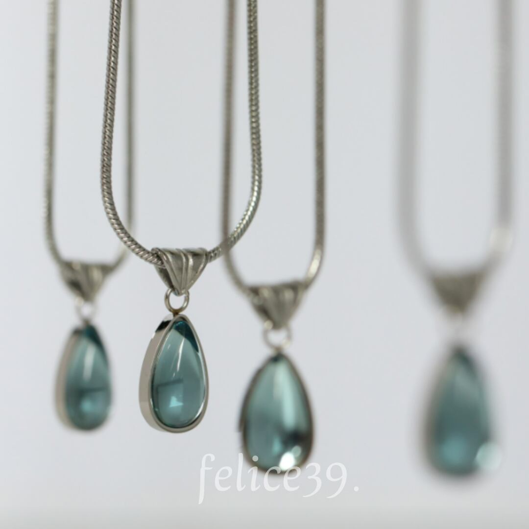 シンプルなスネークチェーンに、しずく型がモチーフのネックレスになります。